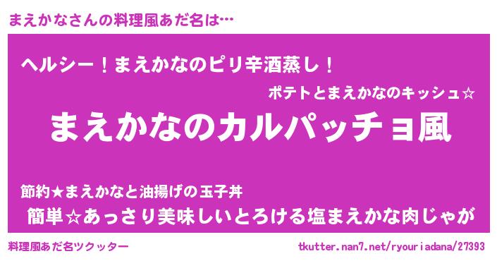 | 男性向けラノベタイトル風あだ名 | 『魔弾の王とまえかな』『まえかなの憂鬱』 |
