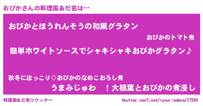 | ヘコむあだ名 | 『おびを』『レバニラ』『おびにゅー』 |