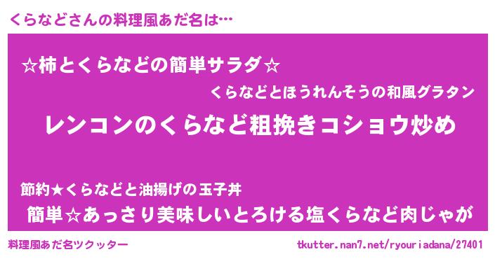| ヘコむあだ名 | 『くらなど(笑)』『くらにゅー』 |