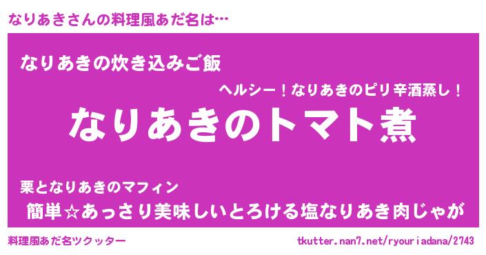 | ヘコむあだ名 | 『なりあき(爆)』『なまこ酢』 |