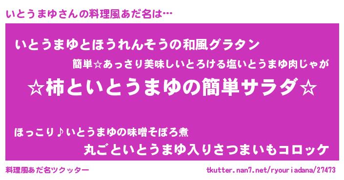 | 意味不明あだ名 | 『めかぶ科いとうまゆ属』 |