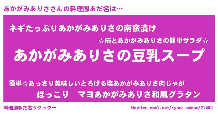 | 意味不明あだ名 | 『とにかく怪しいあかがみありさ』 |
