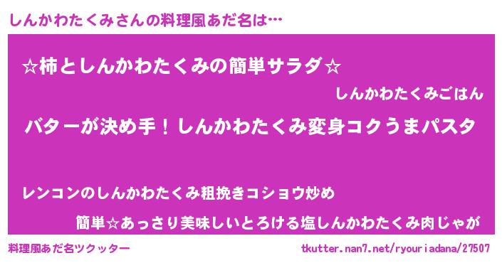 | ヘコむあだ名 | 『しんかわたくみ(笑)』『つくし』 |