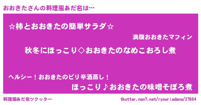 | 男性向けラノベタイトル風あだ名 | 『おおきたに滅ぼされるだけの簡単なお仕事です』 |