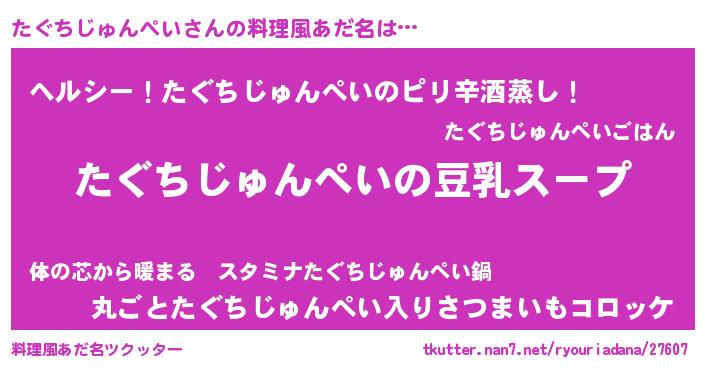 | 胡散臭い通販商品みたいなあだ名 | 『信頼と実績のサプリメント…その名も「たぐちじゅんぺい」』 |