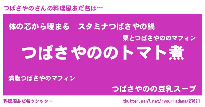 | ポケモン風あだ名 | 『ツックウザ』『ツバサダネ』 |