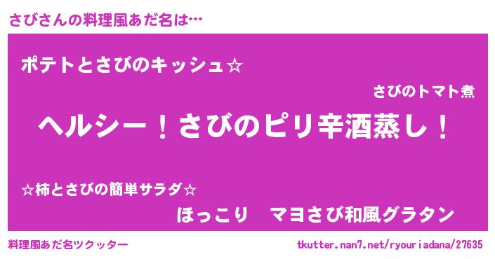 | 男性向けラノベタイトル風あだ名 | 『Re:さびから始める異世界生活』 |