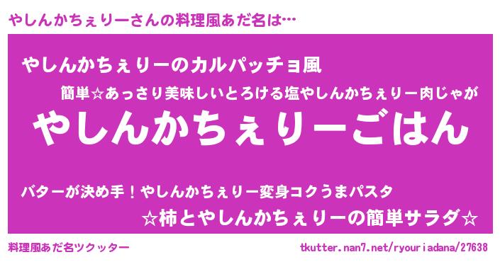 | ヘコむあだ名 | 『やしんかちぇりー(小並感)』『なまこ酢』 |