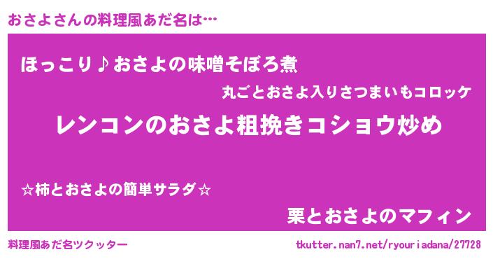 | 女子向けラノベタイトル風あだ名 | 『おさよなんてお断りですっ。』 |