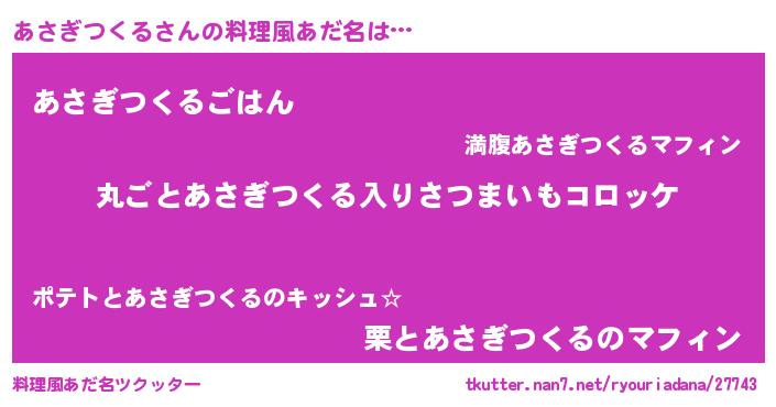| ヒーロー風カッコイイあだ名 | 『仮面アサダー』『ネオアサギツクル』 |