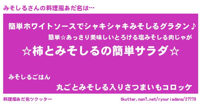 | ヘコむあだ名 | 『みそぷりん』『みそしる(苦笑)』 |
