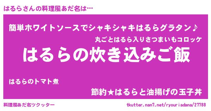 | 胡散臭い通販商品みたいなあだ名 | 『伝統あるサプリメント…その名も「はるら」』 |