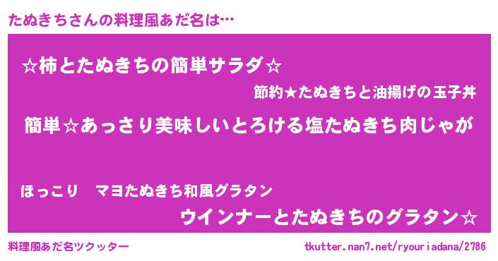 | 意味不明あだ名 | 『永久保存たぬきち』『ペロリンたぬきち』 |