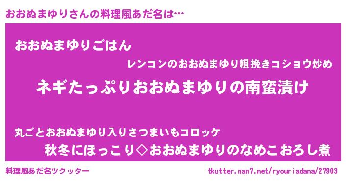 | ヘコむあだ名 | 『おおにゅー』『おおぬまゆり(小並感)』 |