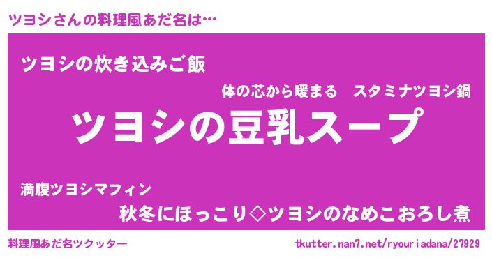 | ピコ太郎風あだ名 | 『ツヨ六郎』『ピツ二郎』『ピコツ郎』 |