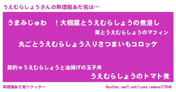 | 男性向けラノベタイトル風あだ名 | 『この素晴らしい世界にうえむらしょうを!』 |