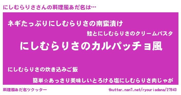 | ヘコむあだ名 | 『にしにー』『にしむらりさ(笑)』 |