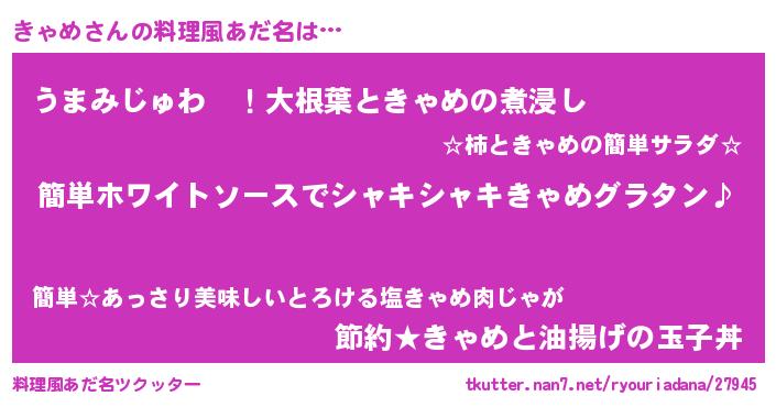 | ピコ太郎風あだ名 | 『キャ二郎』『ピキ四郎』『キコ史郎』 |