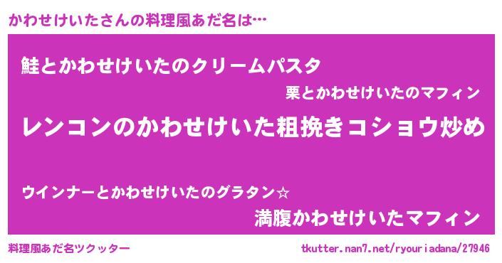 | 男性向けラノベタイトル風あだ名 | 『魔法科高校のかわせけいた』 |