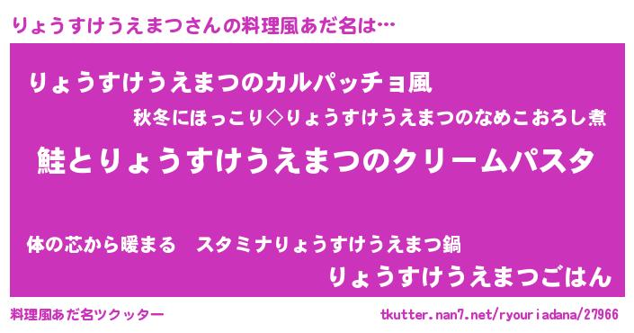 | 男性向けラノベタイトル風あだ名 | 『ノーゲーム・ノーリョウスケウエマツ』 |