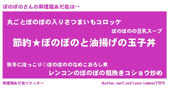| ヘコむあだ名 | 『ぼのもー』『ぼのっ子』『つくし』 |