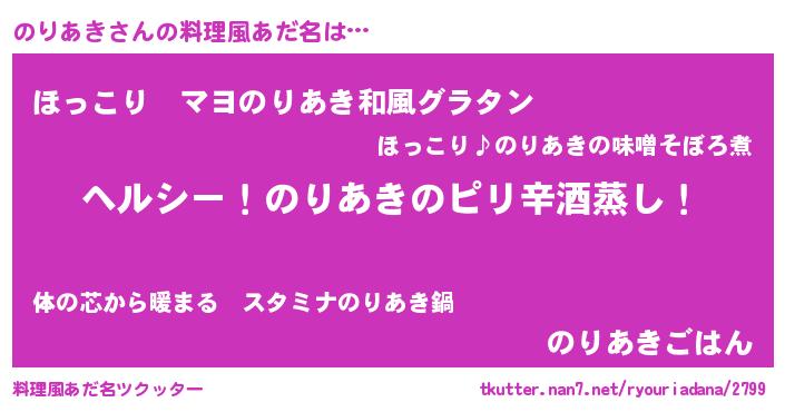 | 男性向けラノベタイトル風あだ名 | 『Re:のりあきから始める異世界生活』 |