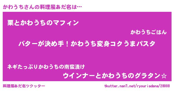 | 女子向けラノベタイトル風あだ名 | 『かわうち恋絵巻』『かわうち伯爵の花嫁』 |
