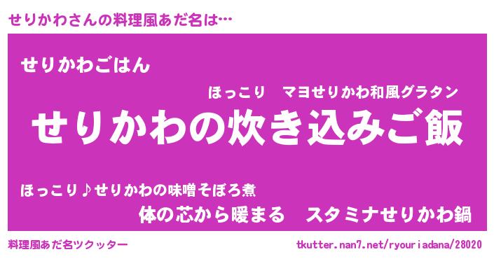 | 男性向けラノベタイトル風あだ名 | 『うちのせりかわが世界を掌握している!』 |