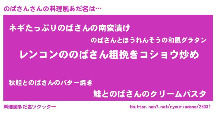 | 意味不明あだ名 | 『自称のばさん』『ペロリンのばさん』 |