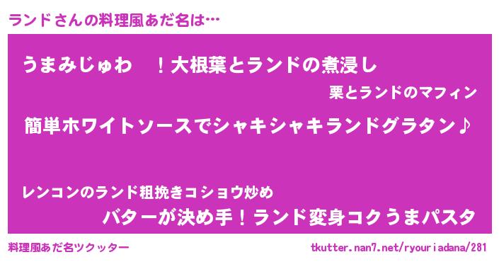 | 女子向けラノベタイトル風あだ名 | 『ランド様がみてる』『ランドの婚約者』 |