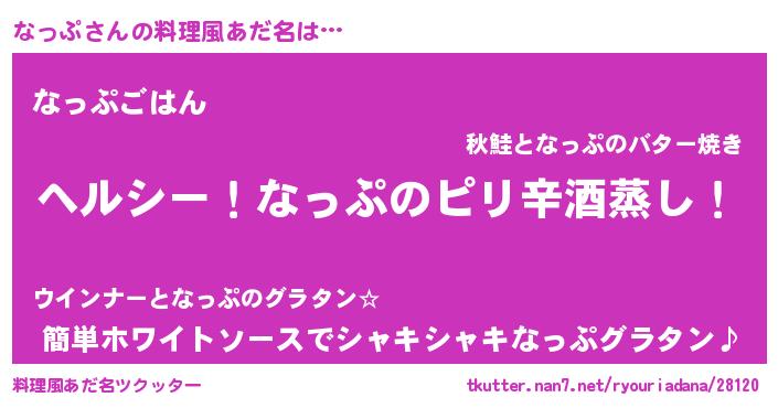 | 男性向けラノベタイトル風あだ名 | 『Re:なっぷから始める異世界生活』 |