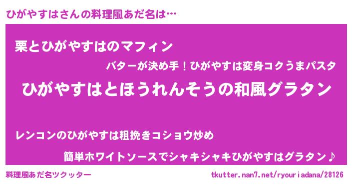 | 女子向けラノベタイトル風あだ名 | 『ひがやすはの玉の輿計画!』 |