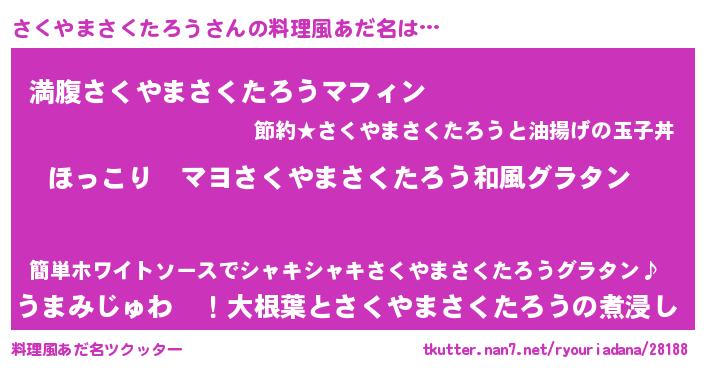 | 男性向けラノベタイトル風あだ名 | 『この素晴らしい世界にさくやまさくたろうを!』 |