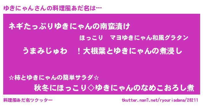ゆきにゃんさんの料理風あだ名をツクッター!