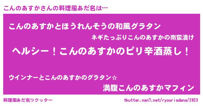 | 女子向けラノベタイトル風あだ名 | 『闇のこんのあすか』 |