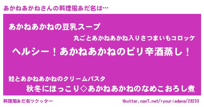 | 意味不明あだ名 | 『自称あかねあかね』 |