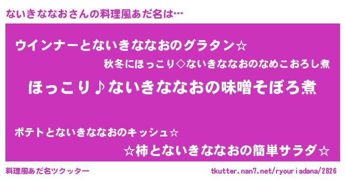 | 恥ずかしいあだ名 | 『プリティーないきななお』『ないっちょ』 |