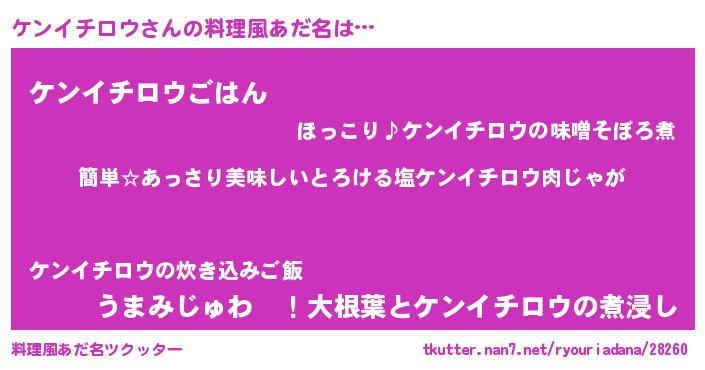 | ヒーロー風カッコイイあだ名 | 『ネオケンイチロウ』『黄金騎士ケン』 |