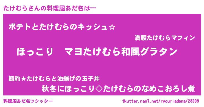 | 意味不明あだ名 | 『住所不定無職たけむら(77歳)』 |
