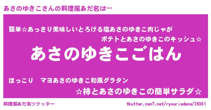 | ヘコむあだ名 | 『あさのゆきこ(苦笑)』『あさお』 |