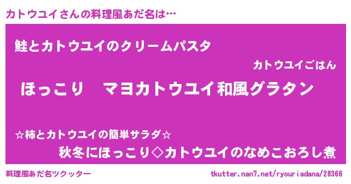 | 意味不明あだ名 | 『住所不定無職カトウユイ(12歳)』 |