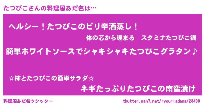 | 男性向けラノベタイトル風あだ名 | 『たつぴこの嫁は女の子じゃないと思った?』 |