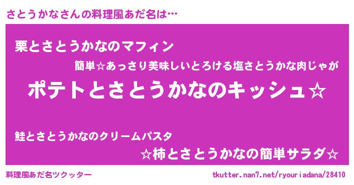 | 女子向けラノベタイトル風あだ名 | 『さとうかなの卵を拾いまして』 |