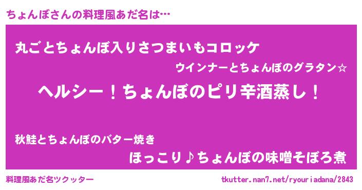 | 意味不明あだ名 | 『自称ちょんぼ』『ペロリンちょんぼ』 |