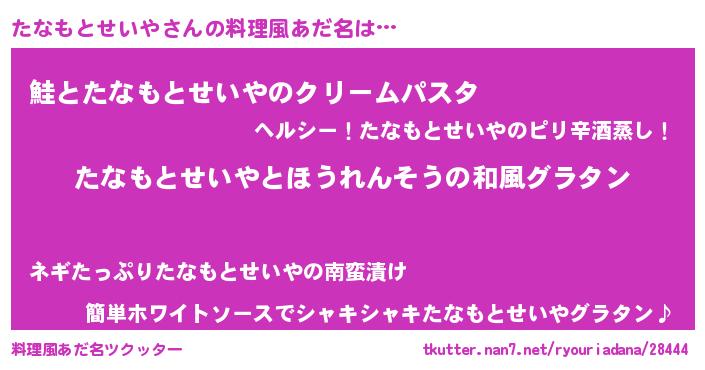 | 男性向けラノベタイトル風あだ名 | 『たなもとせいや~年齢イコール彼女いない歴の魔法使い~』 |