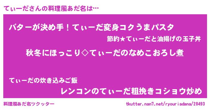 | ヒーロー風カッコイイあだ名 | 『慈愛の使者てぃーだ』『炎刃騎士ティ』 |