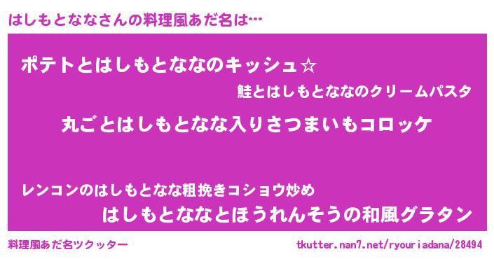 | ポケモン風あだ名 | 『ハーシイ』『ヒハシモトナナ』 |