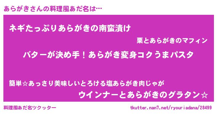 | ヘコむあだ名 | 『あらふぇ~』『酢こんぶ』『あらお』 |