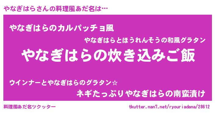 | 胡散臭い通販商品みたいなあだ名 | 『あなたにだけ特別に提供する世界で10本だけ現存している希少なブランデー…その名も「やなぎはら」』 |
