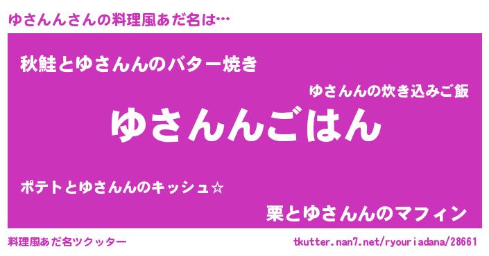 | 男性向けラノベタイトル風あだ名 | 『ユサンンスレイヤー』 |